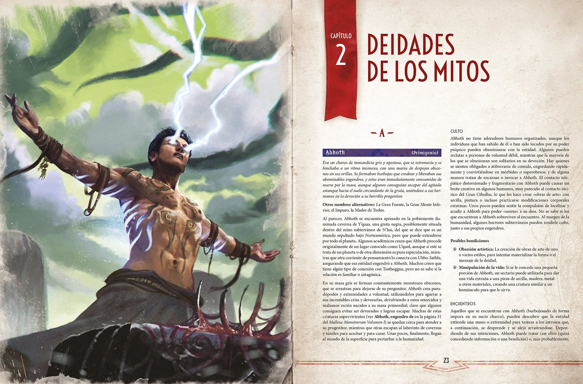 Aquí encontrarás verdades fundamentales del cosmos, que podrás utilizar para sustentar e inspirar innumerables aventuras introduciendo a Cthulhu, Hastur, Azathoth y muchos otros a tus partidas. Con más de 110 entradas relativas a primigenios, dioses exteriores, dioses arquetípicos, avatares y seres únicos, este libro proporciona una plétora de ideas para sumergir tus campañas y escenarios en el corazón de la tradición de los Mitos de Cthulhu.